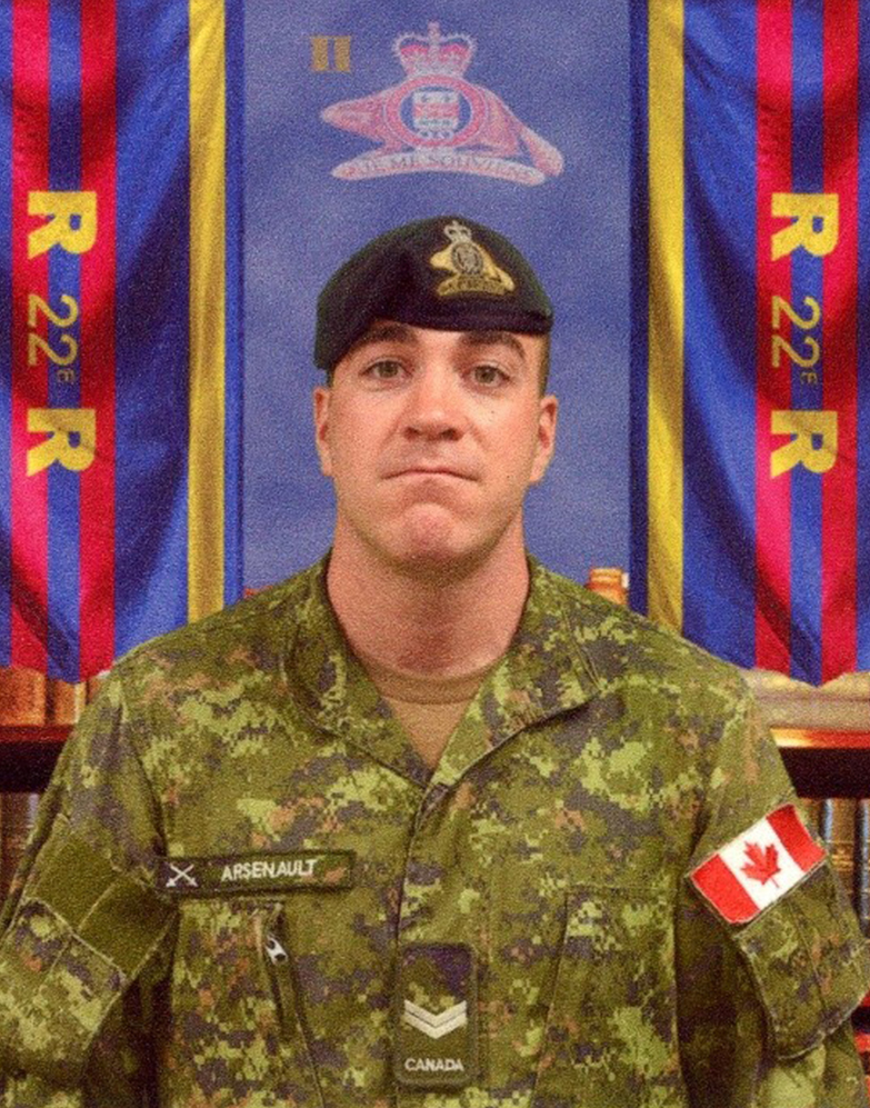 Originaire d’Arthabaska au Québec, le Cpl Arsenault s’est enrôlé dans la Force de Réserve le 23 janvier 2012 avec le 6e Bataillon du Royal 22e Régiment à Saint-Hyacinthe. Il effectuera son premier exercice avec le 6e R22eR à Fort Pickett en Virginie aux États-Unis du 3 janvier au 10 janvier 2013. À son retour il se qualifiera sur son cours d’Opérateur par temps froid à Valcartier.