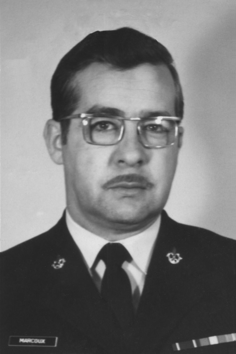 Le Maj Marcoux s’est enrôlé dans les Forces canadiennes le 23 septembre 1955 et servit au sein des trois bataillons du Régiment au Canada ainsi qu’en Allemagne. En mai 1963, il effectue sa première mission au sein des Nations-Unies au Congo et en 1968 il participa à une mission des casques-bleu à Chypres. En 1972, il est en charge de la publicité pour le recrutement des Forces canadiennes au QGDN à Ottawa. Il prend sa retraite le 18 avril 1979.