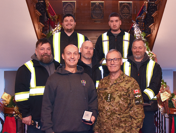 Le 2 décembre 2025, au Mess des officiers de la Citadelle de Québec, le Caporal Alexandre Walsh a reçu la distinction du Colonel du Régiment ainsi qu’un coin, en reconnaissance de son leadership exceptionnel, de son professionnalisme et de son engagement au sein de la Compagnie de la Garnison du Royal 22e Régiment.