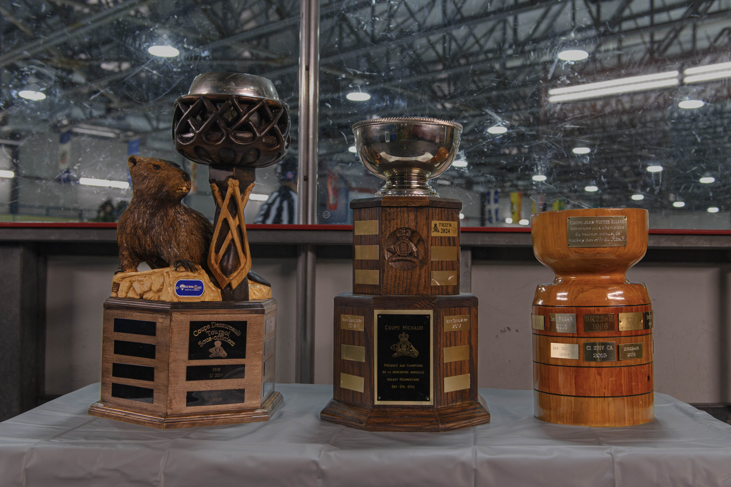Les 10 et 11 avril dernier a eu lieu l’édition 2025 du tournois de hockey Régimentaire à l’aréna Clément-Boulanger sur la Base de soutien de la 2e Division du Canada (2 Div CA), Valcartier. Tel que le veut la tradition, le 1 R22eR, le 2 R22eR, le 3 R22eR ainsi qu’un regroupement de membre hors bataillions se sont affrontés. L’événement comporte trois catégories, soit la Coupe Chuck Michaud pour les soldats, caporaux et caporaux-chef, la Coupe J.J.L.M. Dessureault pour les membres du rang sénior et la Coupe Jean-Victor Allard pour les officiers. La coupe Chuck Michaud a été remportée par l’équipe du 3R22eR. La Coupe J.J.L.M. Dessureault a été remporté par l’équipe des sous-officiers du 2R22eR. La Coupe Jean-Victor Allard a été remporté par l’équipe représentant les membres hors bataillon et chapeauté par le Centre d’instruction de la 2 Div CA.